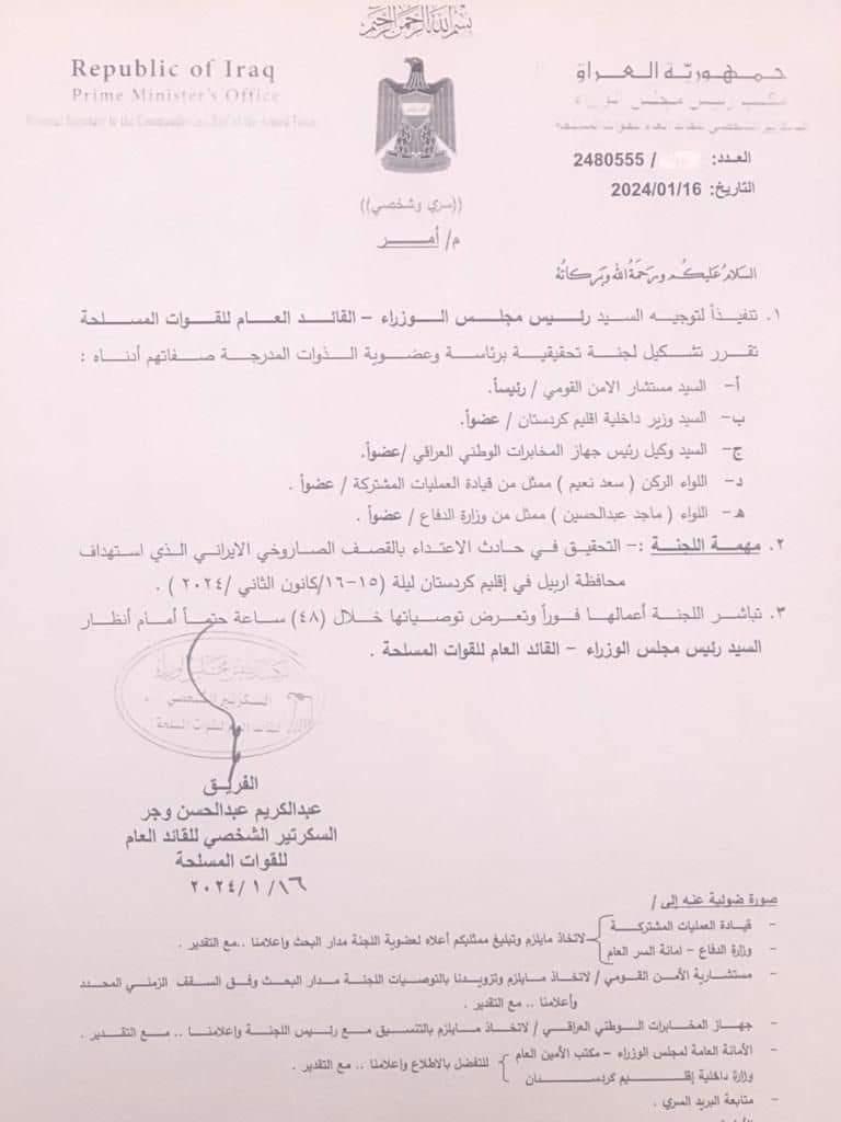 بالوثيقة..أسماء اللجنة المشكلة من قبل السوداني للتحقيق بالقصف الإيراني على أربيل