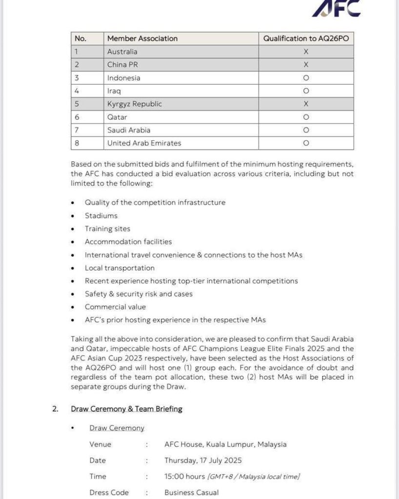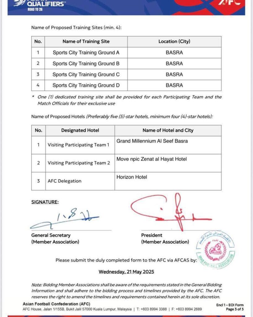 توضيح في الوَقْتِ الذي يواصلُ فيه الاتحادُ العراقيُّ لكُرةِ القدم تحضيراتهُ الفنيّة والإداريّة لمُشاركةِ المنتخبِ الوطنيّ في المُلحقِ الآسيويّ المؤهل إلى كأسِ العالم 2026، ومع اقترابِ مَوعدِ مراسم القُرعةِ، واجتماعِ إحاطةِ الفرق في مقرِّ الاتحادِ الآسيويّ بكوالالمبور، فوجئنا بصُدورِ تقاريرَ إعلاميّةٍ غير دقيقةٍ تزعمُ أن “العراق لم يتقدّم بطلب استضافة مباريات الملحق”، وهو ما ننفيه بشكلٍ قاطعٍ وموثق.وبناءً عليه، يودُّ الاتحادُ العراقيُّ أن يوضحَ للرَأي العامّ الحقائقَ الآتية:أولًا: تقديم العراق ملف استضافة رسميًاالعراقُ قدّمَ رسميًا “نموذج التعبير عن الاهتمام” (Expression of Interest Form) عبر منصةِ AFCAS ضِمنَ المُهلةِ المُحددة من الاتحادِ الآسيويّ (حدها الأقصى 21 أيار/ مايو 2025)، وهو النموذجُ المُعتمد رسميًا على وفق ما وردَ في الوثائقِ الصادِرةِ عن الاتحادِ الآسيويّ.ثانيًا: إدراج العراق ضمن الدول المتقدمة بطلب الاستضافةفي الخِطابِ الرسميِّ الصادر عن الاتحادِ الآسيويّ بتاريخ 13 حزيران / يونيو 2025، تمّ إدراجُ العراق ضمن قائمةِ الاتحاداتِ الثمانية التي تقدمت بعروضِ استضافةٍ، وتمّ تمييزه بعلامةِ (○) لكونه من الدولِ التي تأهلت فعليًا إلى مرحلةِ المُلحق بعد تَقديمِ العرض.ثالثًا: اختيار السعودية وقطر لأسباب تنظيمية وفنيةجاء قرارُ اختيار السعودية وقطر كمضيفتين استنادًا إلى معاييرَ تنظيميّةٍ وفنيّةٍ وتجاريّةٍ بحتةٍ، كما أشارَ الاتحادُ الآسيويُّ في بيانه، من دون أن يتضمنَ القرارُ أيَّ نفي أو إشارةٍ إلى عَدمِ تَقديمِ العراق لملفه أو استبعاده لأي سببٍ آخر.رابعًا: الحملة الإعلامية الممنهجةإن تداولَ أخبارٍ غير صحيحةٍ كهذه، في هذا التَوقيتِ الحرج الذي تستعدُ فيه المنتخباتُ الآسيويّةُ لخوضِ مرحلةٍ مفصليةٍ من التصفياتِ المؤهلة إلى كأس العالم، لا يمكنُ تفسيرهُ إلا على أنه جزءٌ من حملةٍ إعلاميّةٍ ممنهجةٍ، تقفُ وراءها منصاتٌ ومواقعُ اعتادت على بثِّ تقاريرَ غير دقيقة، ذات طابعٍ موجّهٍ وغاياتٍ مصلحيّةٍ ضيقة.يهدفُ إلى التَشويشِ على مَسيرةِ المُنتخبِ العراقيّ، والتقليل من مكانةِ العراق ومؤسساتهِ الرياضيّة، عبر محاولاتٍ ممنهجةٍ للانتقاصِ من قراراتهِ الشرعيّةِ، ومشاركته التنظيميّة، رغم التزامه الكامل بالإجراءاتِ واللوائحِ المُعتمدةِ من الاتحادين الآسيويّ والدوليّ.وإن هذه الأساليبَ لا تخدمُ مصلحةَ الكرةِ العراقيّة، بل تسيءُ إلى مبدأ السِيادةِ الوطنيّةِ، وتحاول الانتقاصَ منه لغاياتٍ مفضوحةٍ لا تبتعدُ عن التخادُّمِ مع جهاتٍ خارجيةٍ، هدفها الأساسيُّ خلقُ جوٍ من الضغطِ النفسيّ والإعلاميّ على المُنتخبِ العراقيّ، والتأثير على استقراره الفنيِّ والمعنويِّ قبيل دخولِ غِمارِ الاستحقاقِ المُقبل.ويؤكد الاتحادُ العراقيُّ لكرةِ القدم رفضه التامّ لهذه المُمارسات، ويدعو جميعَ وسائل الإعلامِ إلى تحرّي الدقةِ والمسؤوليّةِ في النشر، والاحتكام إلى الوثائِقِ الرسميّةِ، والبياناتِ الصادرة عن الجهاتِ المَعنية، بعيدًا عن الإثارةِ والتضليلِ والتوظيفِ السياسيّ المُغرض. كما يدعو الاتحادُ الجهاتَ الأمنيّةَ المُختصة إلى التحقُّقِ من خلفياتِ هذه الادعاءاتِ، ومَن يقفُ وراءها، بعدَ أن باتت غاياتها واضحةً بصُورةٍ جليةٍ للشعبِ العراقيّ، والمُتمثلة في عرقلةِ مَسيرةِ المُنتخبِ الوطنيّ العراقيّ، وتشويه صورته إقليميًا.