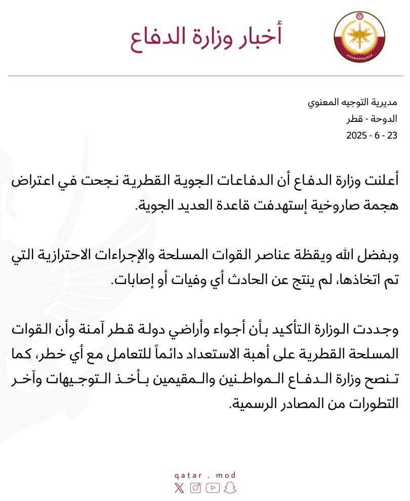 بيان وزارة الدفاع في قطر