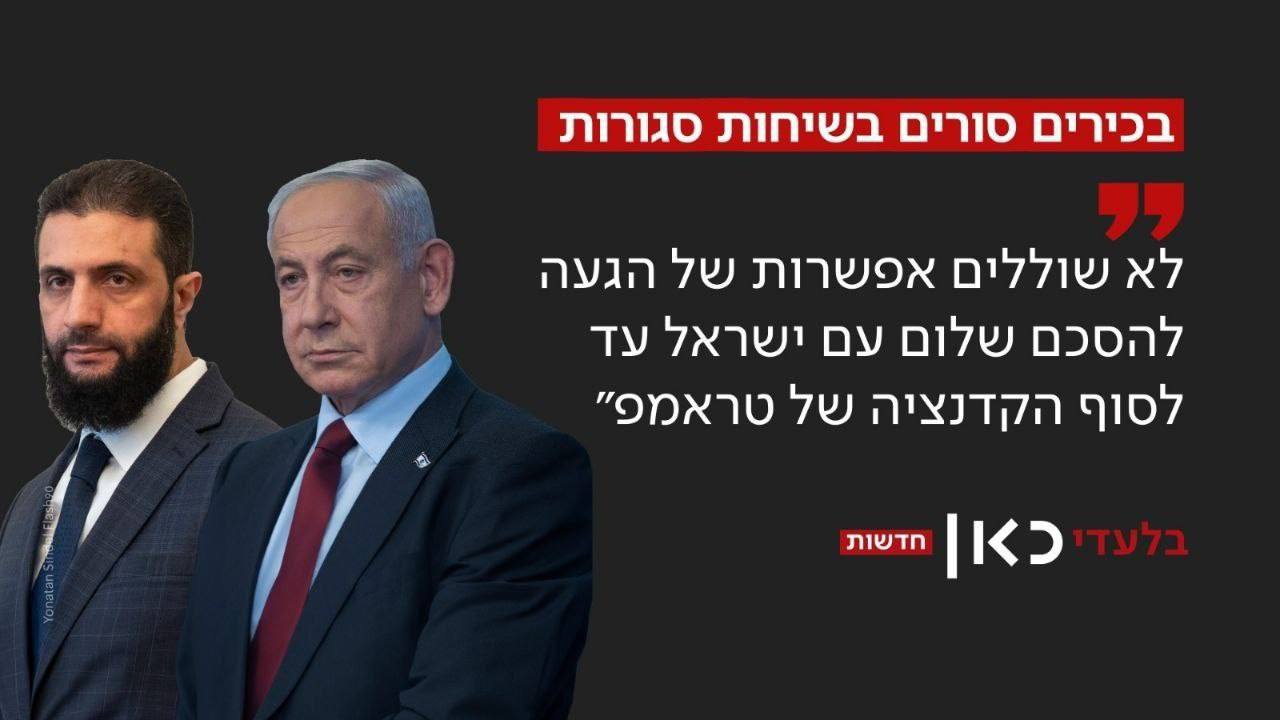 صحيفة يديعوت أحرنوت: إسرائيل وسوريا تستعدان لتطبيع العلاقات والاتفاق المتوقع بين سوريا وإسرائيل يشمل ضم الجولان رسمياً للسيادة الإسرائيلية بموجب الاتفاق ستدافع إسرائيل عن نظام الحكم السوري وتثبته.