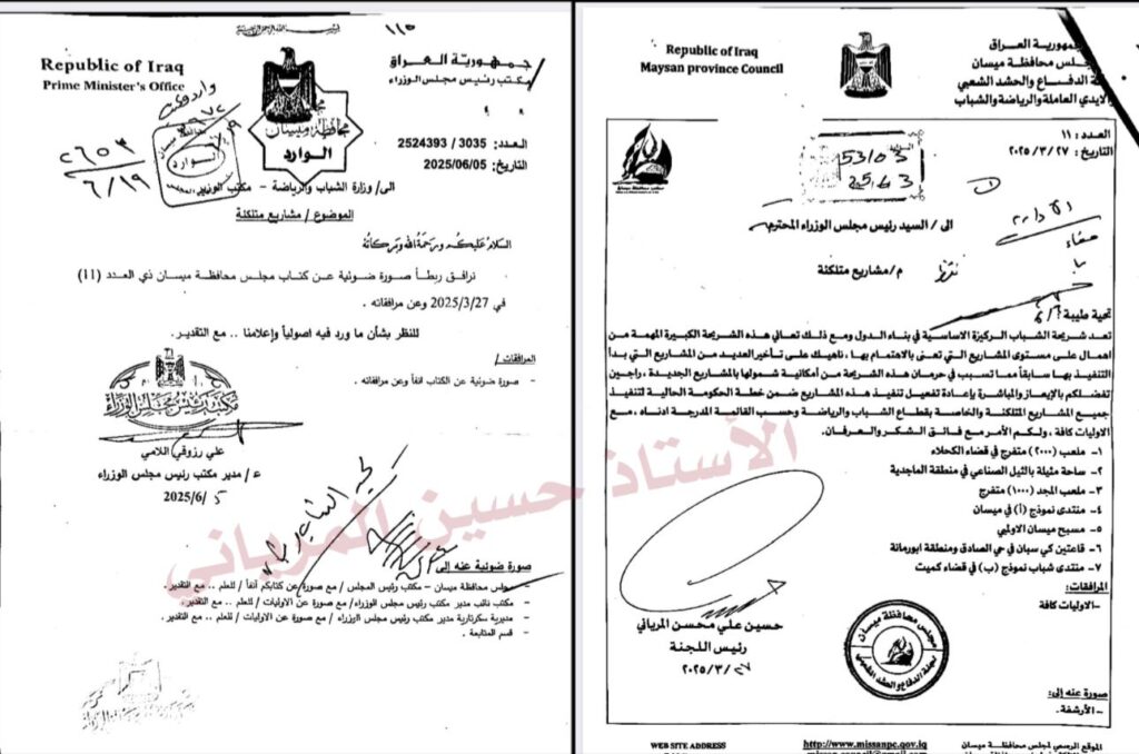 رئيس لجنة الشباب والرياضة في مجلس محافظة ميسان يخاطب رئيس الوزراء بشأن المشاريع الرياضية المتلكئة
