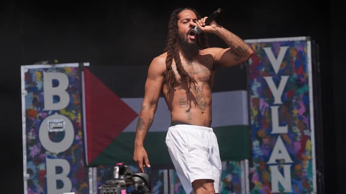 الدنيا مقلوبة في محطات التلفزيون والصحف البريطانية حول الحفلة الغنائية في جلاستنبيري …لأن مغني البوب الانكليزي بوب ڤايلن ..قال: الموت الموت للجيش الاسرائيلي!!!