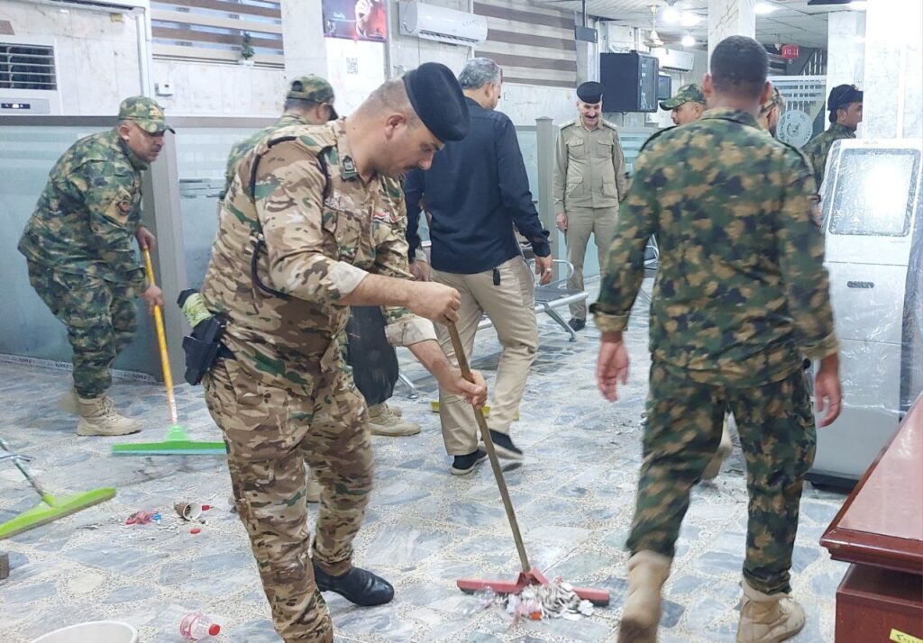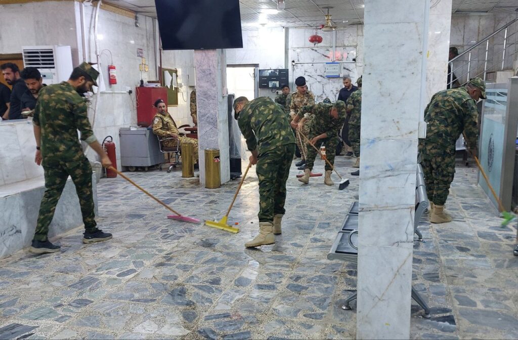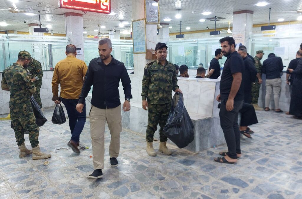 قام أبناء الحشد الشعبي في محافظة ميسان هذا اليوم بحملة واسعة لتنظيف فروع مصرف الرافدين في المحافظ وذلك عقب الانتهاء من توزيع رواتب منتسبي الحشد.وشملت الحملة تنظيف المداخل والساحات الخارجية والردهات الداخلية للفروع في مبادرة تعكس الوعي العالي والانضباط الذي يتحلى به منتسبو الحشد، فضلاً عن تعزيز روح التطوع وخدمة المجتمع.وأكد القائمون على الحملة أن هذه الخطوة تأتي تقديراً لجهود العاملين في المصرف وتعبيراً عن الحرص على تقديم صورة حضارية تليق بتضحيات الحشد ومكانته بين أبناء الشعب.ولاقت المبادرة إشادة من موظفي المصرف والمراجعين الذين عبّروا عن تقديرهم لهذا العمل الطوعي النبيل مشيدين بحرص الحشد الشعبي على دعم مؤسسات الدولة ليس فقط في الجانب الأمني بل في مختلف المجالات الخدمية والمجتمعية.المبادرة تأتي ضمن الجهود التطوعية لتعزيز التعاون مع مؤسسات الدولة، وترسيخ قيم الانضباط والمسؤولية المجتمعية التي يتحلى بها مجاهدو الحشد.