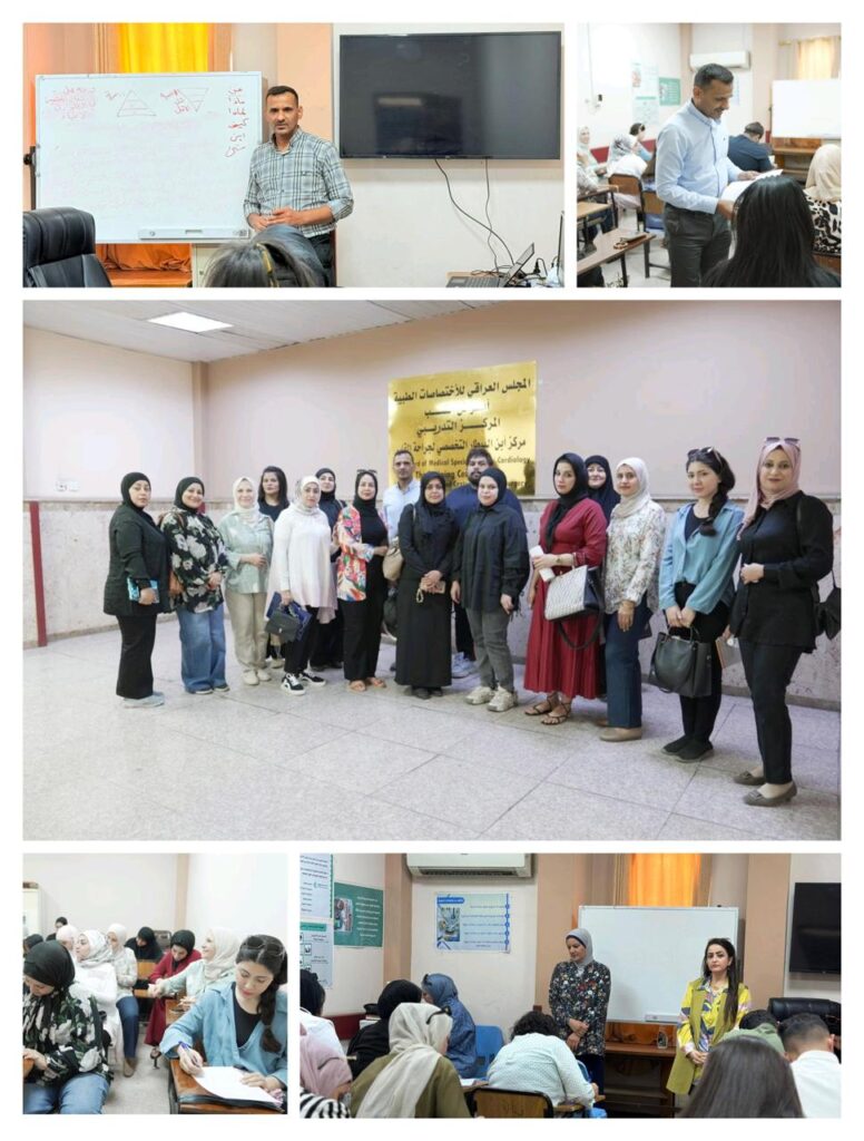 على قاعة المحاضرات في مركز ابن البيطار التخصصي لجراحة القلب لمدة خمسة أيام بمشاركة (25) مشارك من اعضاء الارتباط شؤون المرأة في المؤسسات الصحية في جانب الكرخ بأشراف مقيم معتمد السيدة نسرين كاظم ميرزا ومدير شعبة شؤون المرأة الدكتورة سجى علي عبد الحسين