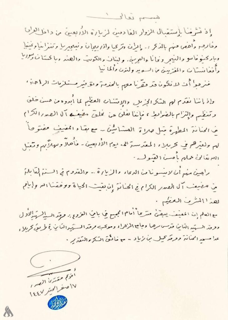السيد الصدر يغلق مضيف آل الصدر في الحنانة