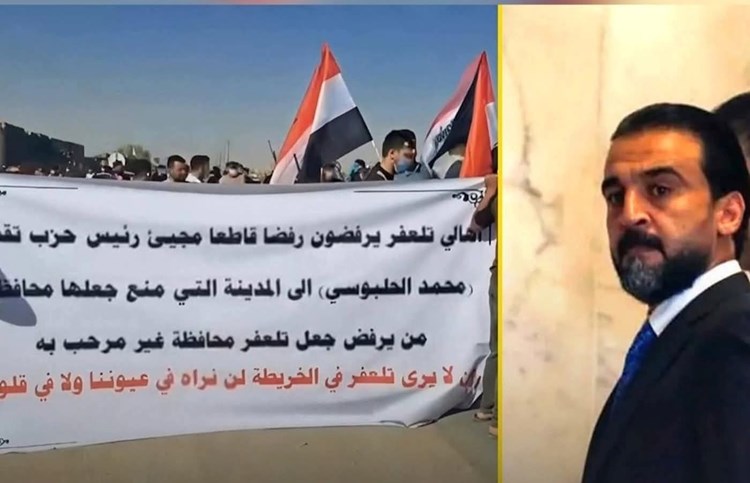 وأكد شهود عيان أن “مئات المواطنين تجمهروا قرب مدخل القضاء وأغلقوا الطريق الرئيس بالإطارات المشتعلة، احتجاجاً على مواقف الحلبوسي من ملف تحويل تلعفر إلى محافظة مستقلة”، مبيناً أن “المحتجين رفعوا لافتات تؤكد تمسكهم بمطلبهم، وعدّوا رفض الحلبوسي لذلك استهدافاً مباشراً لحقوقهم”.