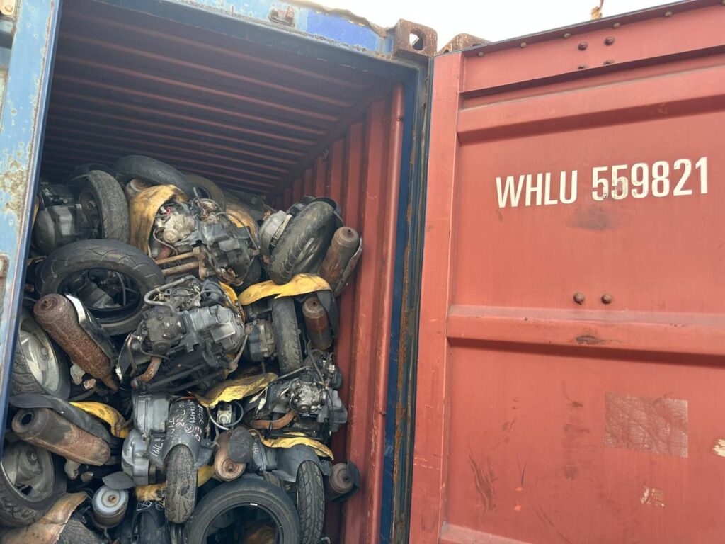 تمكنت مديرية منفذ ميناء ام قصر الشمالي، بناءاً على المعلومات الواردة من مصادر خاصة بالهيأة وبعد استحصال موافقة السيد قاضي التحقيق الشفوية، تم ضبط أربع حاويات، تحتوي (دراجات نارية مستعملة) ممنوعة من الاستيراد، معده للتهريب .