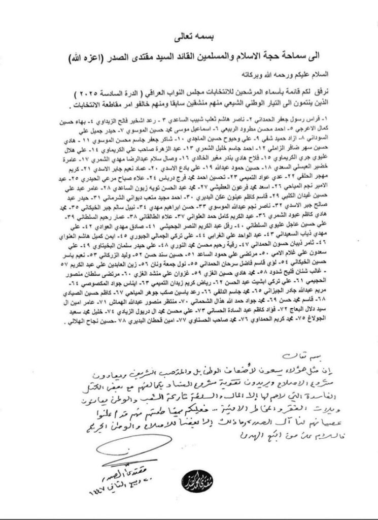 الصدر يعلق على 78 مرشحاً من التيار: قاطعوهم فقد أعلنوا عصيانهم بغضاً بالإصلاح