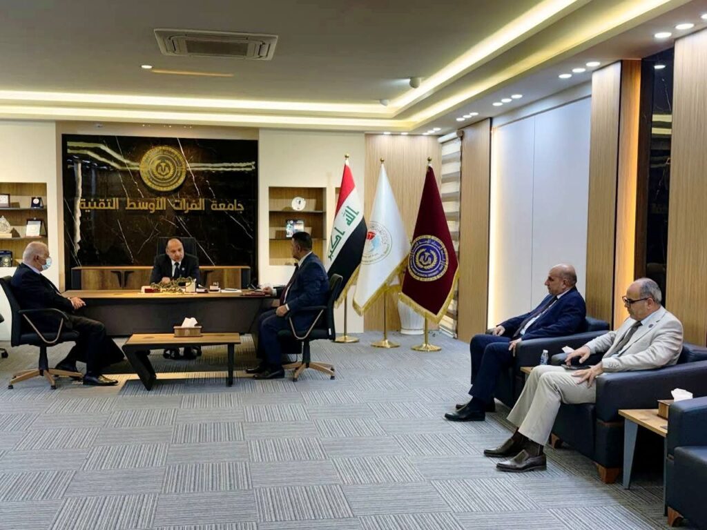 رئيس جامعة الفرات الأوسط التقنية يستقبل وفدًا من غرفة صناعة النجف الأشرف
