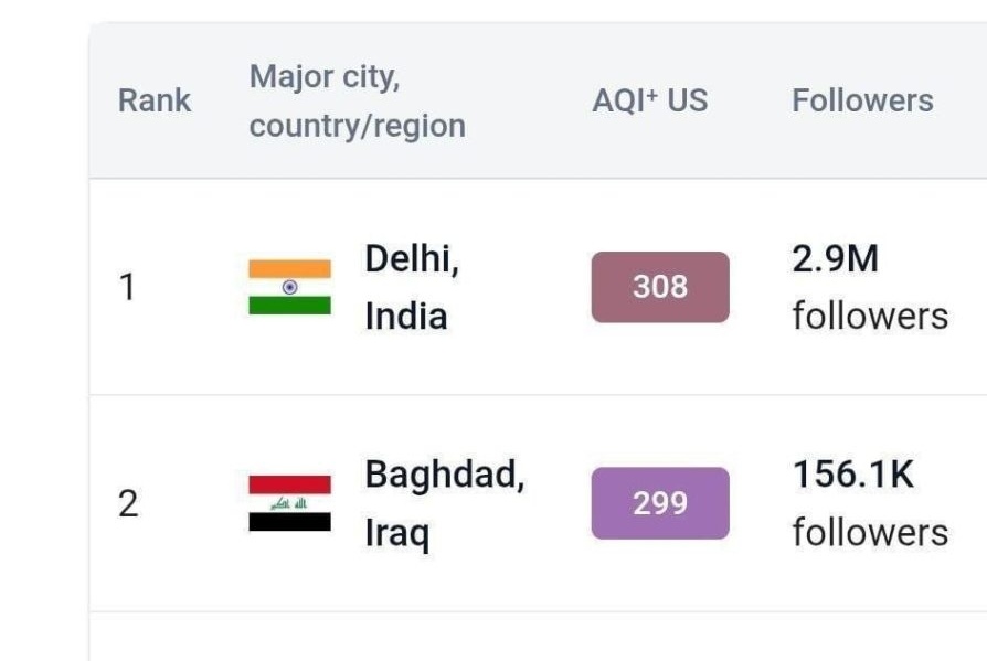 و للمرة الأولى حلت بغداد في المرتبة الاولى عالميا بمستوى التلوث، وفقا للمؤشر العالمي لجودة الهواء.